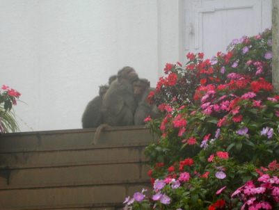 JN Prasad, a local Birdingpal and a very experienced birder, came to the hotel in the early morning for a trip to Nandi Hills. On the way, we stopped at a temple for Lord Ganesha and the guard allowed us to enter to take pictures. To prove India is a wine-producing country, we passed several vineyards before we started to clime the hills. When we reached the top, it was quite cold and very misty, but we still managed to find birds. Even the monkeys were huddling together to keep warm.